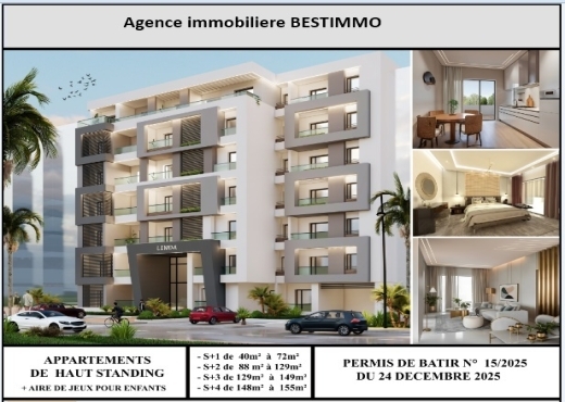Un appartement S+1 Emplacement: Ennaser 2 Bon emplacement proche de toutes commodités En rez de chaussée Bonne orientation est, bien ensoleillé Description: Un salon Une kitchenette séparée bien équipée dispose également d’un séchoir. Une chambre à coucher avec placard. Une salle de bain. Superficie totale: 60 m² Superficie couverte: 49 m² Chauffage central Prix : 180000 dt - Bâti 1997 - Titre individuel